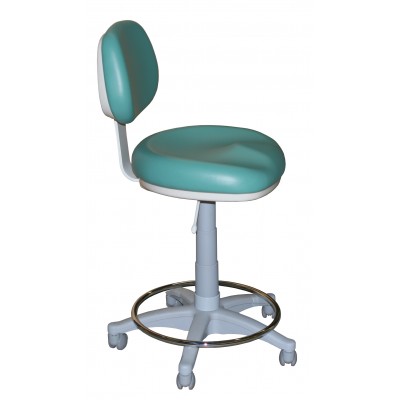 Сидение с анатомической формой гарантирует удобство и комфорт для работы врача, а установленное на крестовине стула кольцо обеспечивает опору ногам стоматолога.