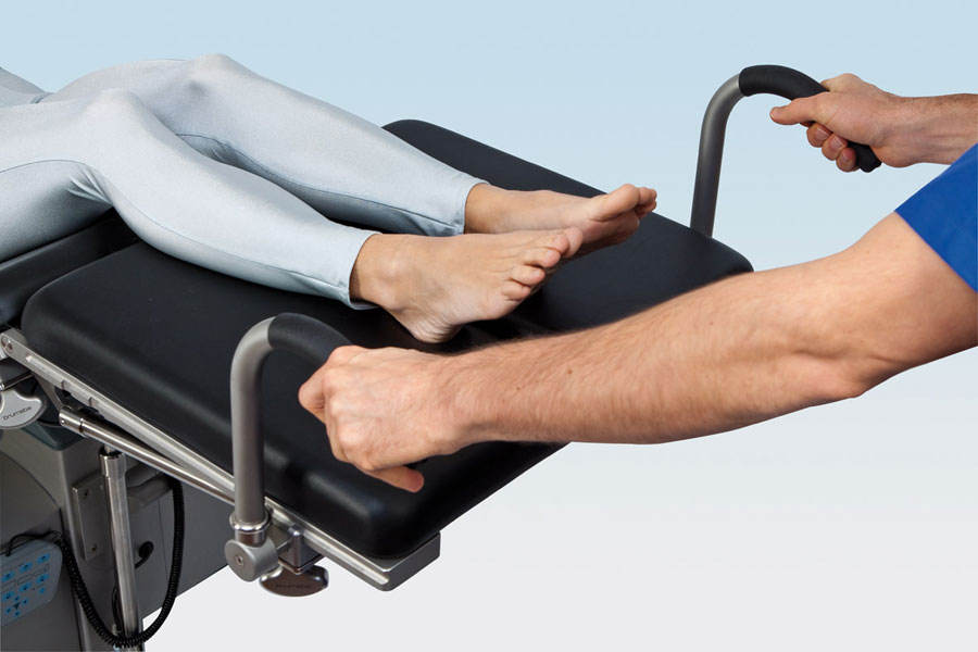 Благодаря быстро монтируемым передвижным ручкам наши хирургические столы могут быть более мобильными. Прорезиненная область для захвата рукой предотвращает скольжение даже при наличии влажных рук. Эта модель легко складывается, тем самым экономит пространство и не мешает перекладыванию пациента.