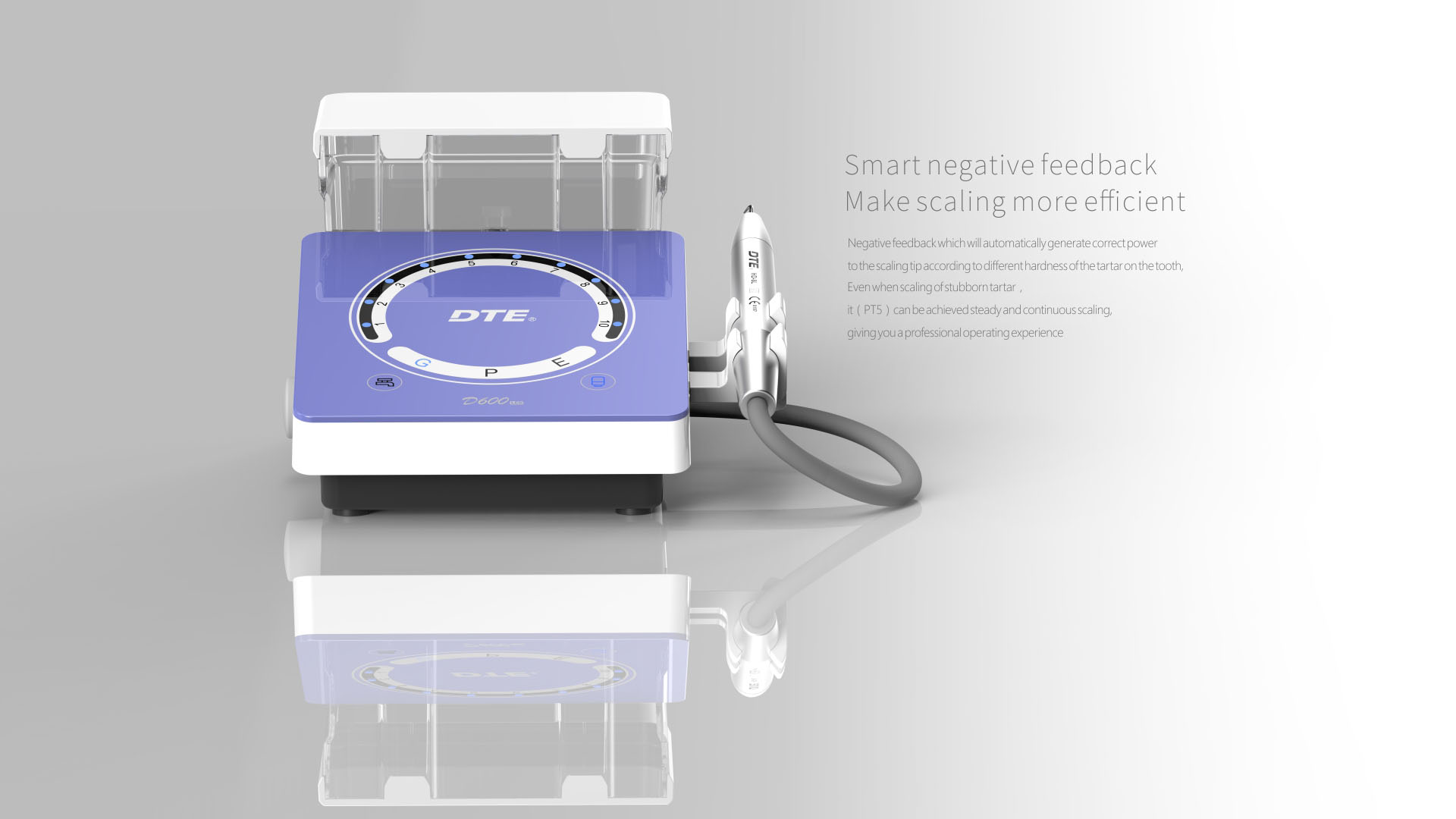 Ультразвуковой скалер D600 - новая модель 2017 года, получившая лучшие свойства от лидера рынка - скалера D7 и воплотившая в себе новейшие технологии в утра-звуковом лечении.