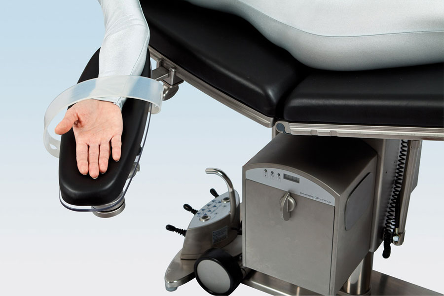 Этот пристегивающийся на разных уровнях подлокотник с мягкой обивкой может использоваться и как боковой упор, и как дополнительная поверхность для области руки при хирургических вмешательствах с множеством оперируемых областей.