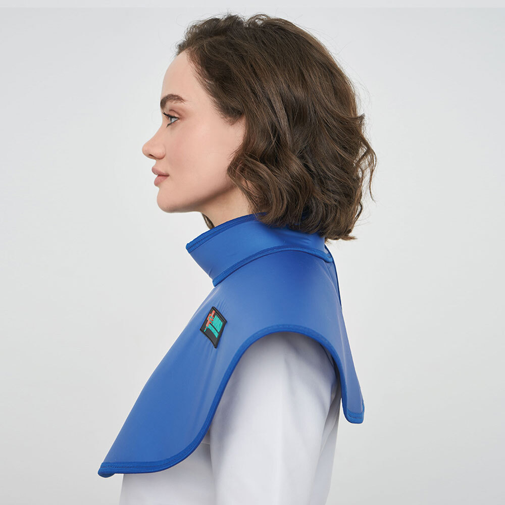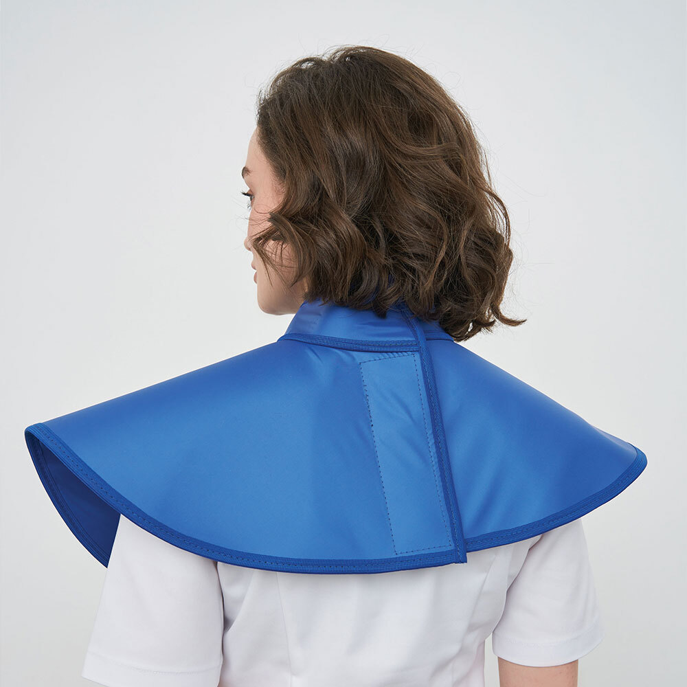 Пелерина предназначена для защиты щитовидной железы и внутренних органов пациента в районе плечевого пояса и верхней части грудной клетки при черепных и стоматологических исследований пациента применяются так же стоматологический фартук для ортопантомографа с воротником. Для стоматологов же специально разработана модель фартука с воротником-стойкой.