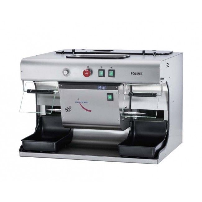 Полировочная установка Poliret от Reitel (Германия) имеет два шпинделя с гибкой регулировкой скорости до 4500 об / мин. Вы можете работать одновременно с разными пастами и кистями - например, для предварительной полировки и полировки с высоким блеском. Яркие светодиодные индикаторы освещают вашу рабочую зону на шпинделях, а два подвижных, устойчивых к царапинам окна защищают вашу одежду от летящих брызг. Всасывающие каналы могут быть индивидуально отрегулированы по своим характеристикам. Вытяжной воздух направлен вверх. Фильтры легко извлекаются и промываются при температуре 40 ° С.
