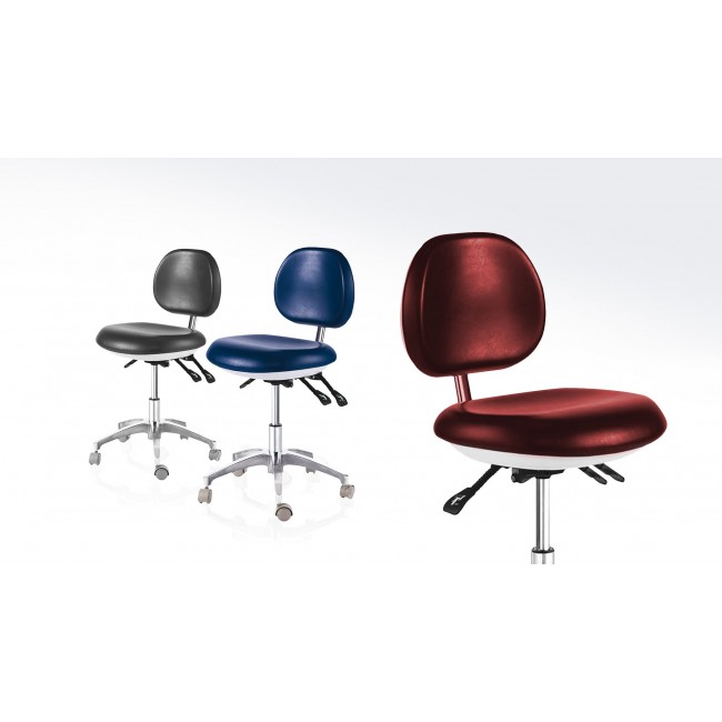 - Стул врача-стоматолога с регулируемой спинкой на пятилучевом основании на сдвоенных роликах.
