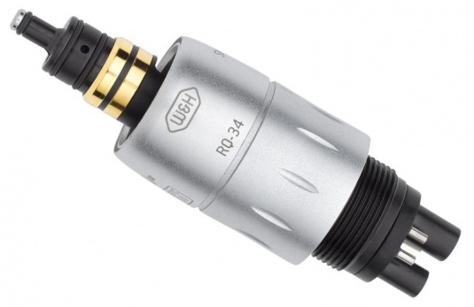 Быстросъёмное соединение Roto Quick компании W&H является универсальным адаптером для передачи воздуха, воды, электричества и света между турбинным шлангом стоматологической установки и воздушным мотором, турбиной и скалером.