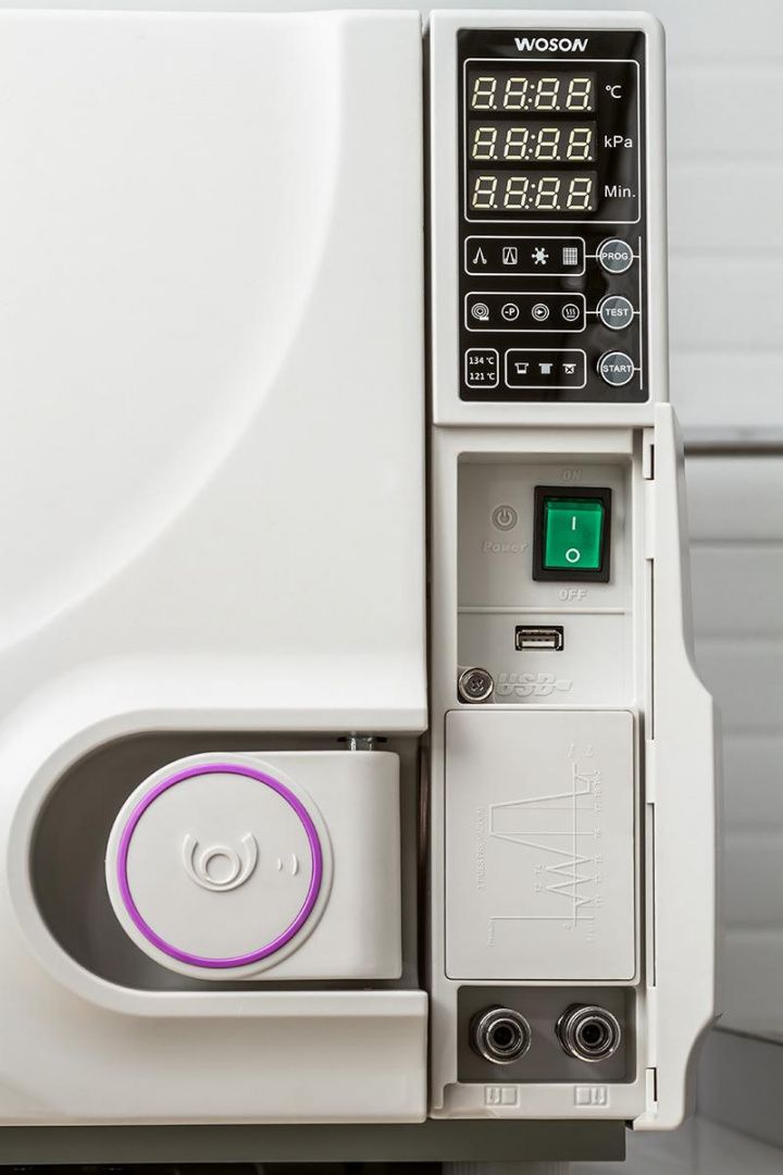 • Стандартный В-класс стерилизации с трехкратным вакуумированием и сушкой, остаточная температура простерилизованного инструмента менее 0,2%.
